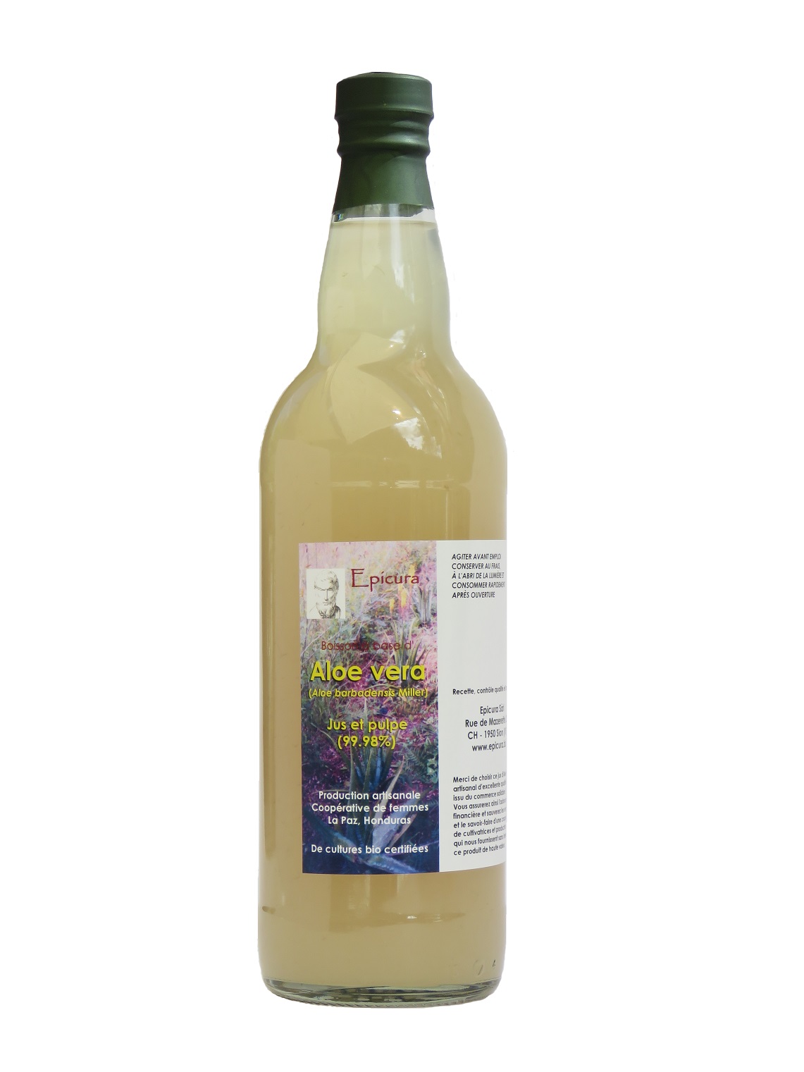 Le jus d’Aloe vera proposé se compose à 99.98% de la pulpe des feuilles d’Aloe vera.